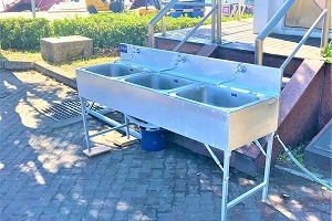 3槽シンク&1槽式沈殿槽+給排水工事1式