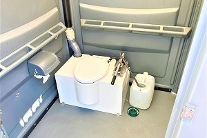 左から、ロイヤルトイレ(和式軽水洗)・ロイヤルトイレ(小用非水洗)・バリアフリートイレ(洋式簡易水洗)
